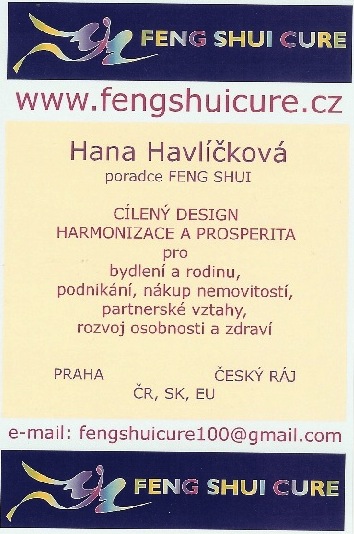 Hana Havlíčková mail: fengshuicure100(a)gmail.com Telefon: +420 605 869 896 Místo pro konání seminářů : Praha nebo podle požadavku skupiny jinde.